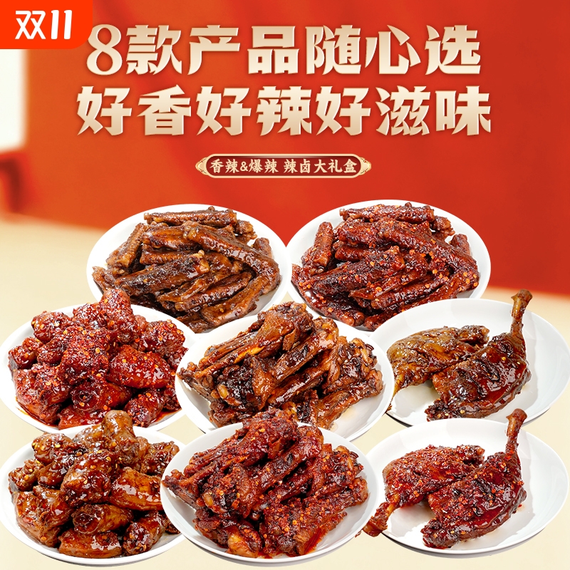 【周黑鸭旗舰店】锁鲜鸭脖鸭锁骨鸭翅 组合卤味零食小吃 武汉特产