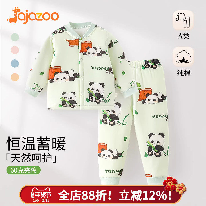 宝宝保暖套装秋冬夹棉纯棉衣服婴儿棉服居家内衣儿童分体薄棉秋装