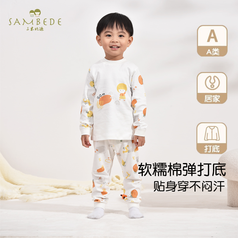 儿童无骨舒绒纯棉内衣套装男女宝宝棉质居家服弹力打底保暖秋衣裤