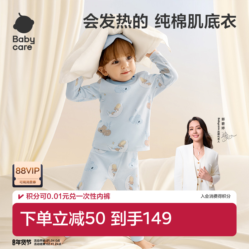 babycare儿童睡衣纯棉a类男童居家内衣套装女童全棉宝宝家居服