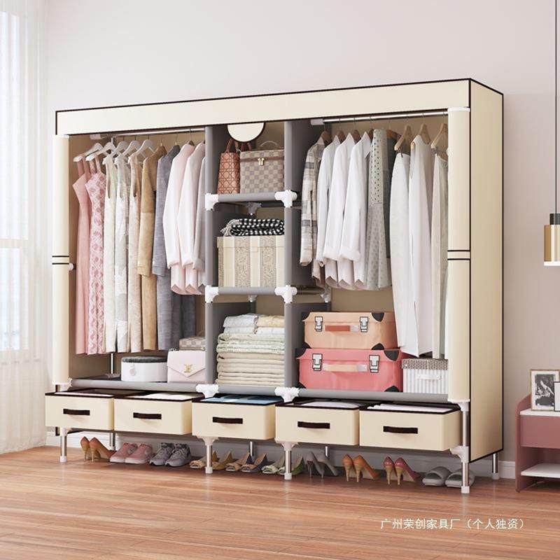 衣柜家用卧室出租房用简易组装钢制衣柜钢管加粗加厚布艺收纳衣橱