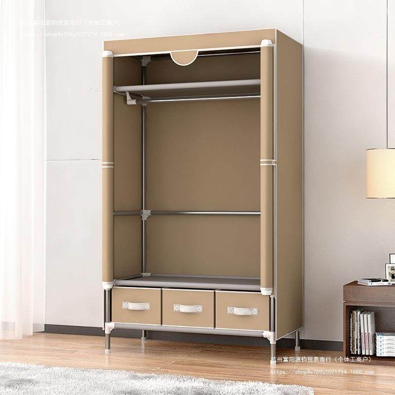 衣柜简易组装出租房用现代简约加粗钢管加厚布艺结实耐用抽屉布柜