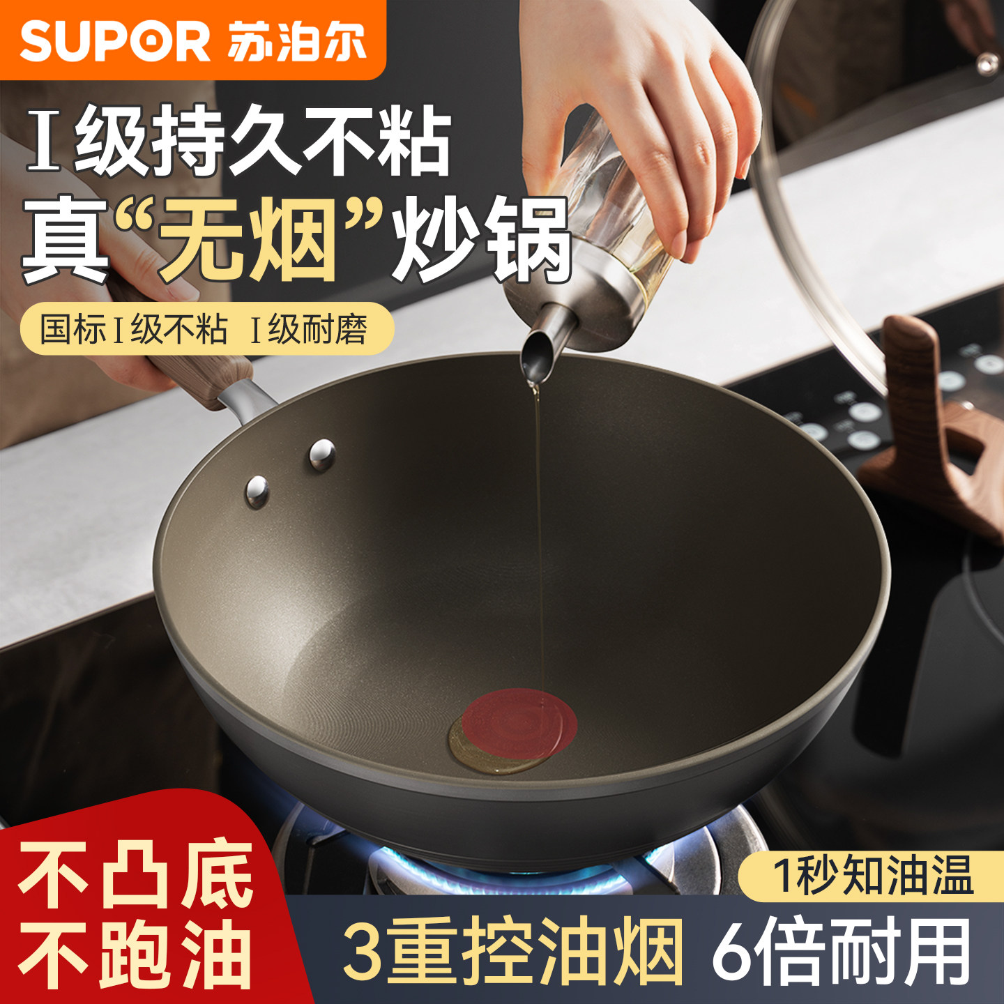 【新品】苏泊尔不粘锅家用炒菜锅无烟锅火红点电磁炉燃气灶通适用