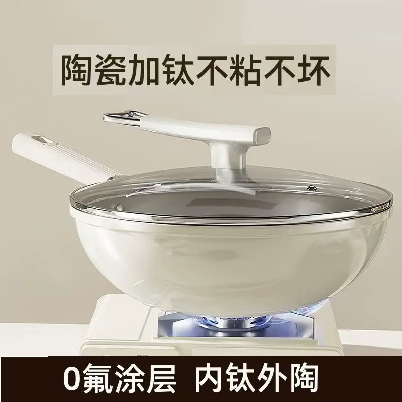 钛陶瓷不粘锅炒锅家用不沾炒菜锅燃气灶电磁炉专用平底锅无烟锅具