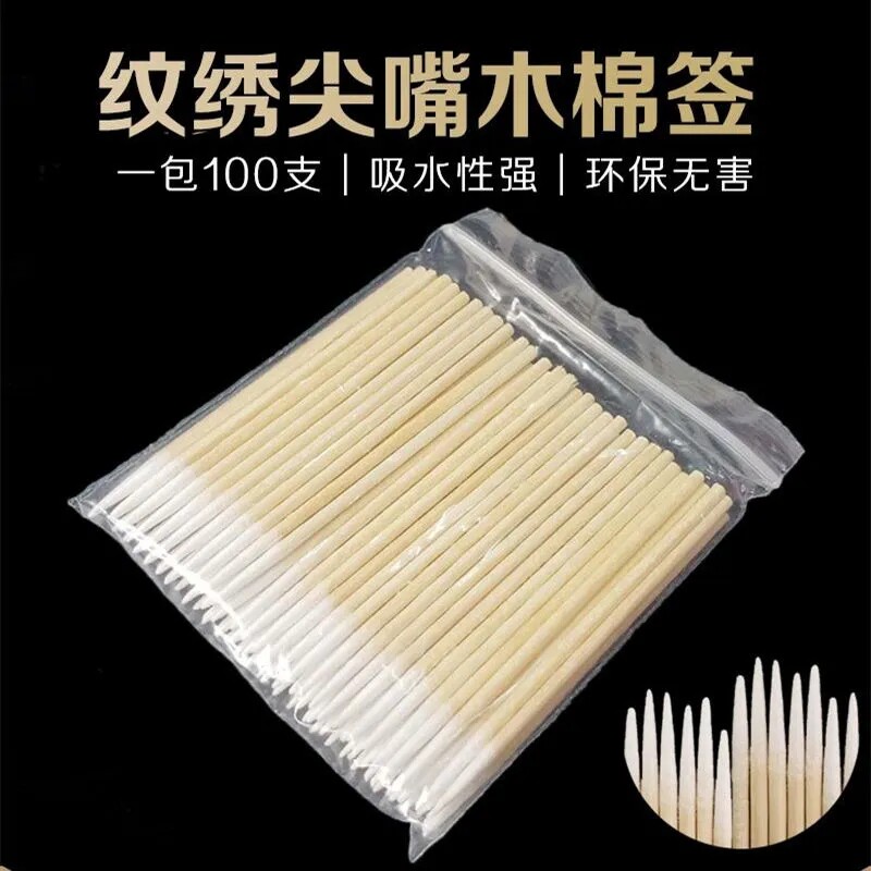 尖头棉签纹绣专用半永久棉签尖头尖嘴木棉棒眼线专用纹绣工具用品