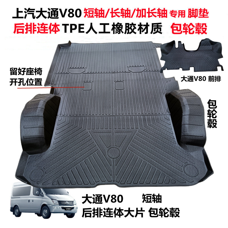 上汽大通V80专用环保TPE前排全包围汽车脚垫 V80后连体包轮毂脚垫