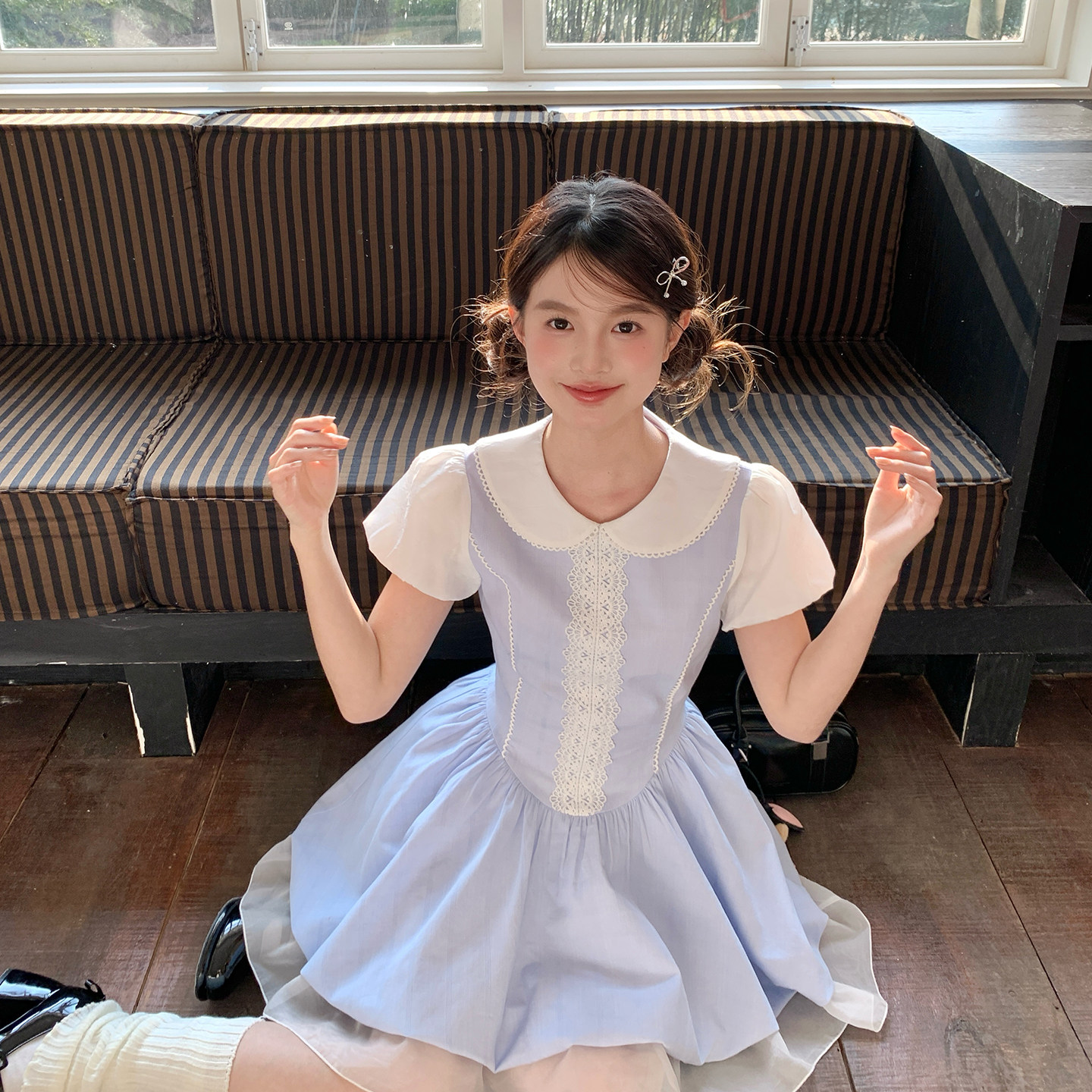 东京岁时记jk新款蓝色短袖连衣裙女夏小个子甜美清新海洋感娃娃裙