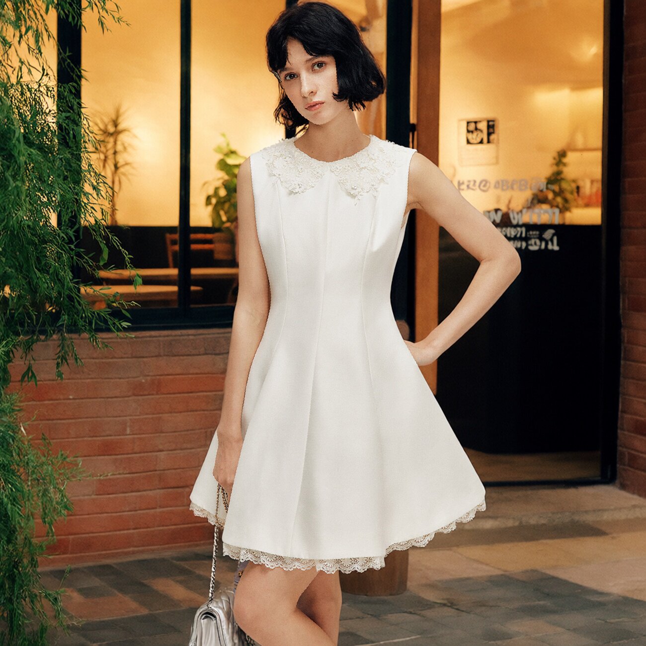 NSS COLLECTION"奶香少女doll"娃娃领短裙子泡泡袖修身白色连衣裙