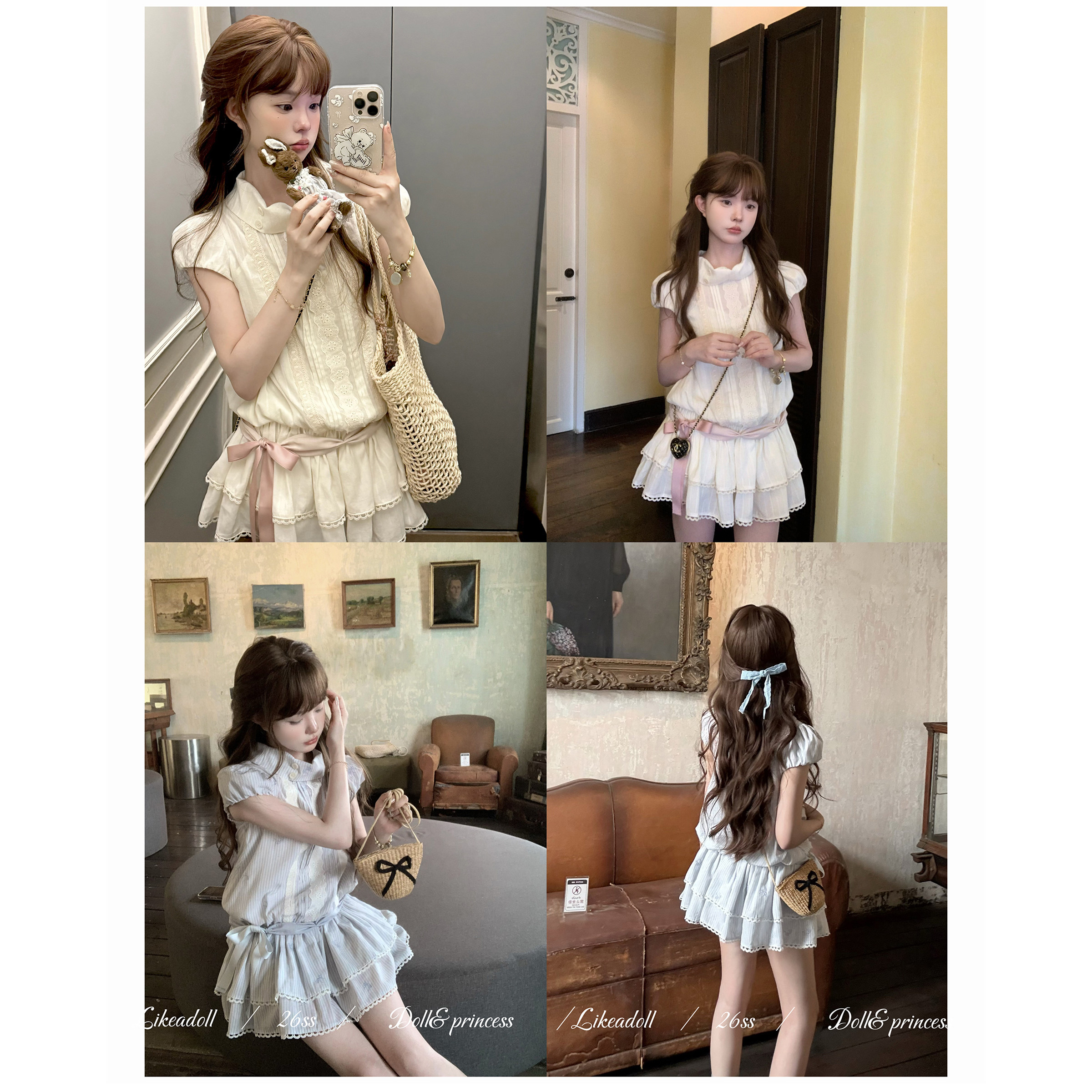 Doll原创『心动序章』古董娃娃感翻领泡泡袖连衣裙夏季减龄裙子
