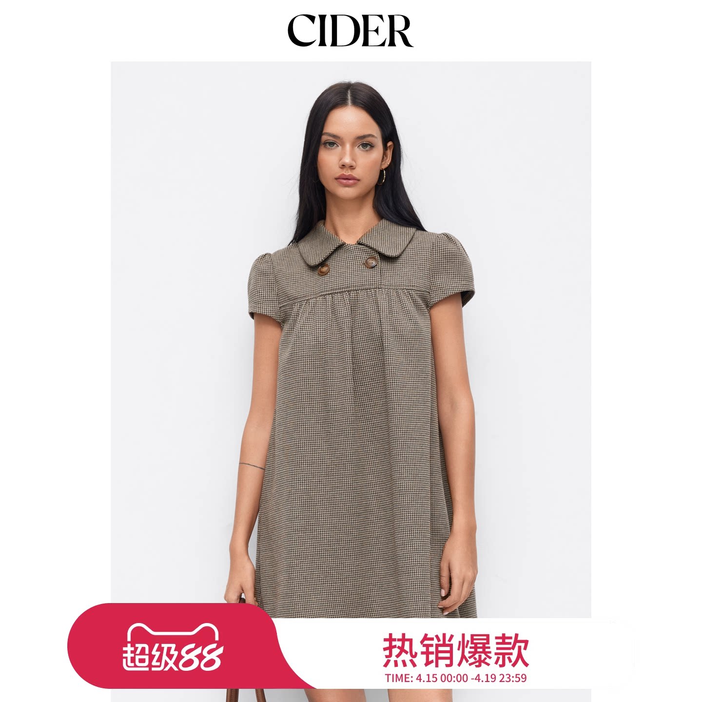 CIDER彼得潘娃娃领美式复古格子短袖针织波点连衣裙114967589