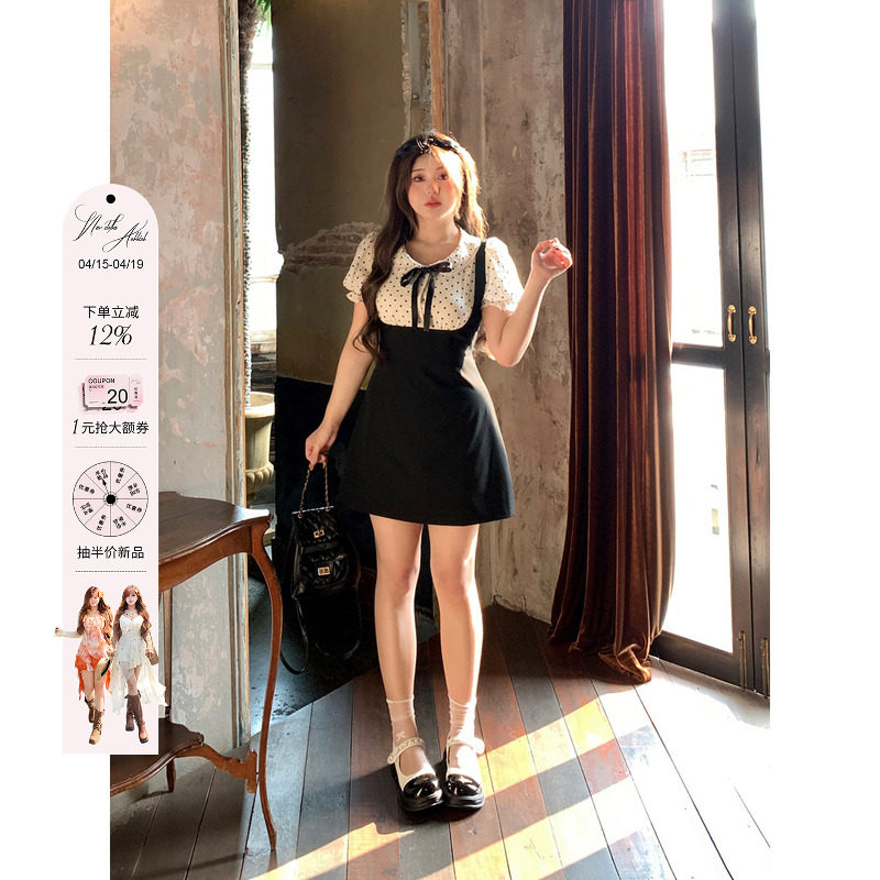 东京岁时记jk夏季新款娃娃领短袖连衣裙黑米格女可爱减龄短款裙子