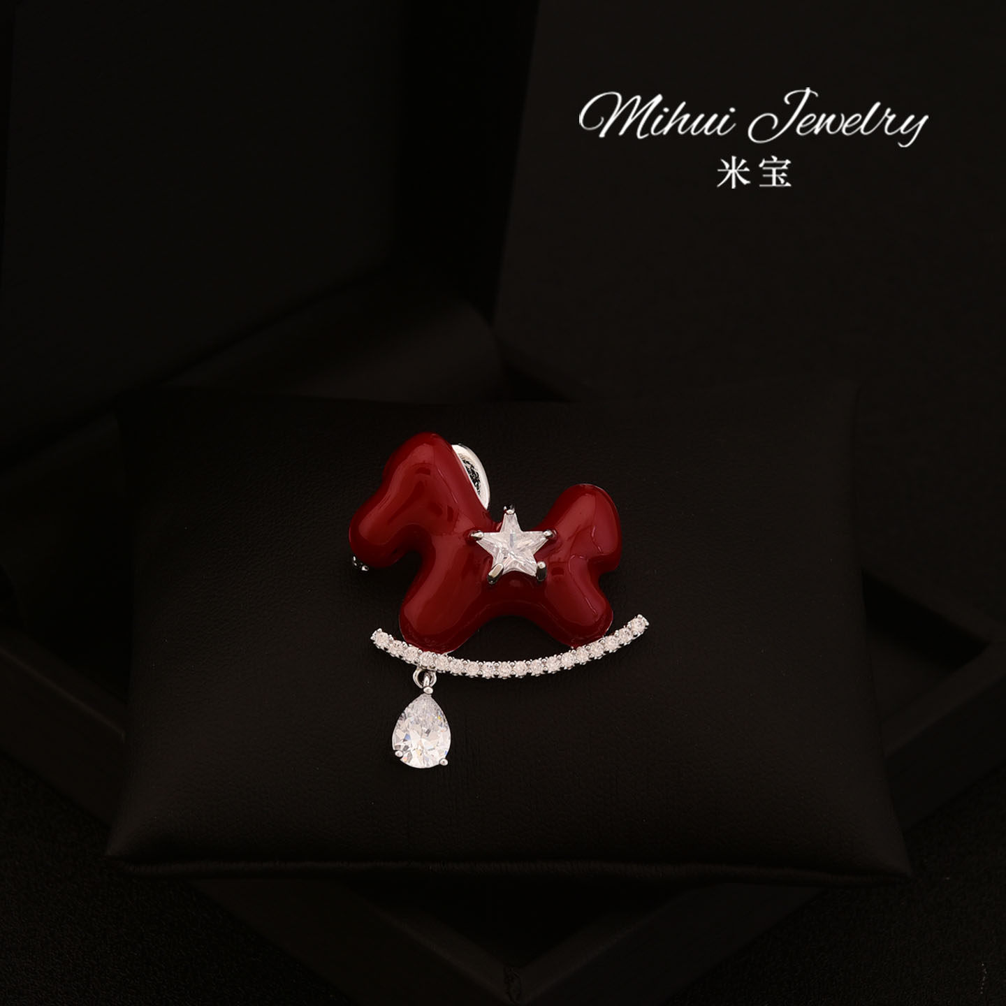韩国可爱俏皮木马胸针高级感水晶小马别针新年喜庆动物配饰礼物女