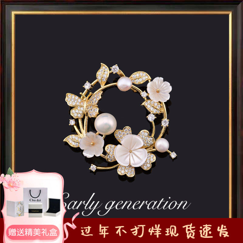 藤蔓胸针天然珍珠母贝韩国胸花时尚奢华别针西装大衣高档百搭配饰