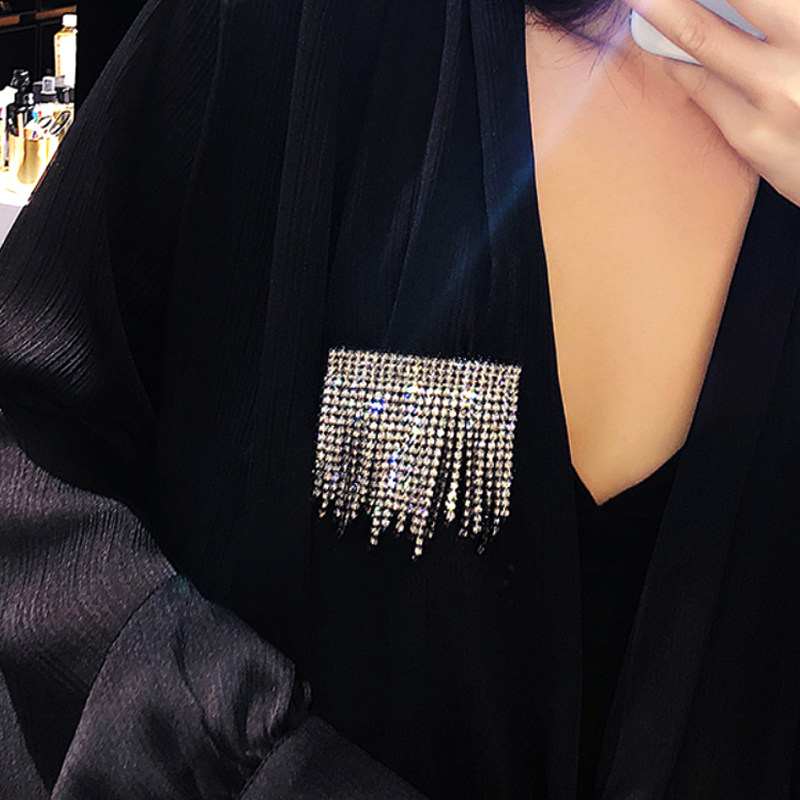 个性新款超闪满钻流苏胸针 韩国水钻时髦夸张西装胸花女别针饰品