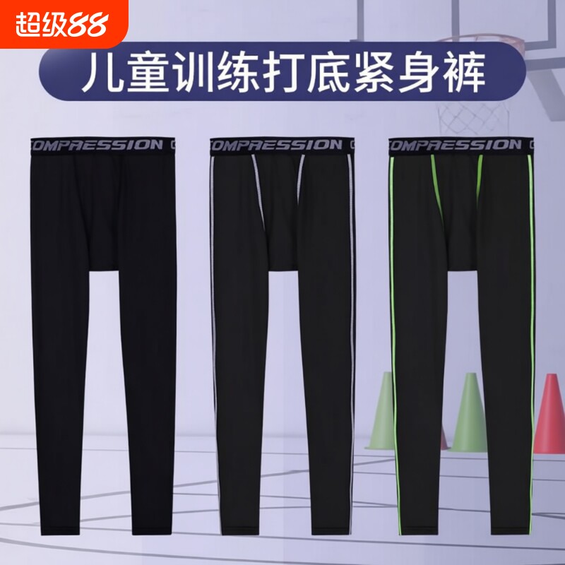 儿童男童篮球打底裤训练足球紧身长裤跑步服运动速干衣秋冬季加绒