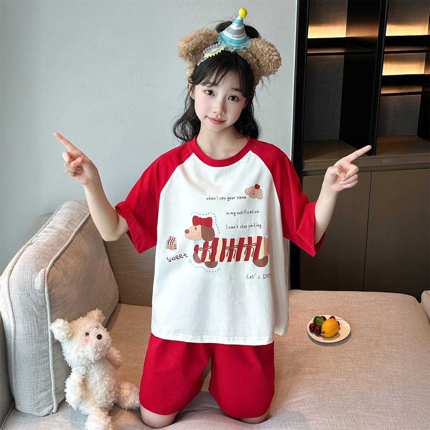 极速女童睡衣夏季纯棉短袖短裤儿童A小女孩套装2025新款夏款大童