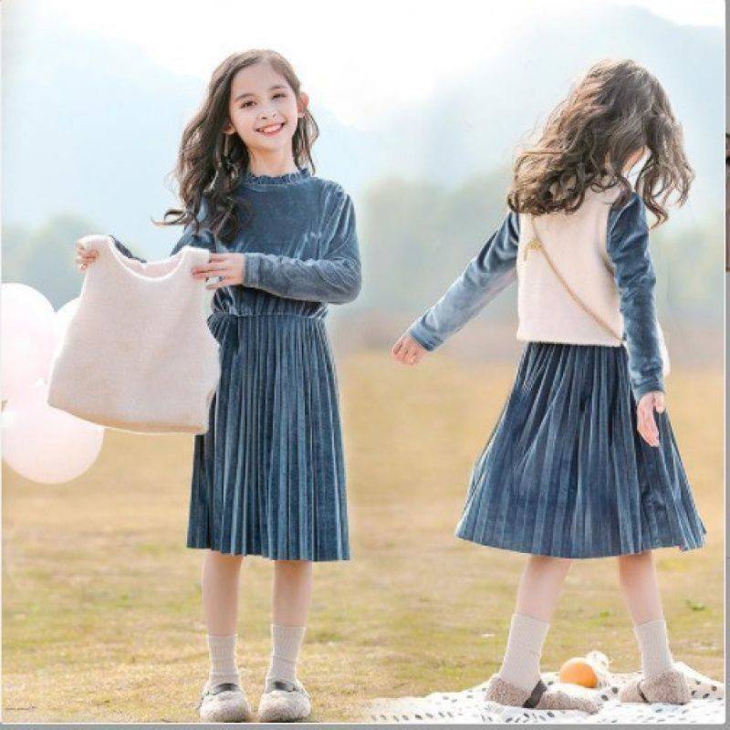 女童连衣裙秋冬两件套裙子时髦中大儿童洋气小女孩套装加绒公主裙