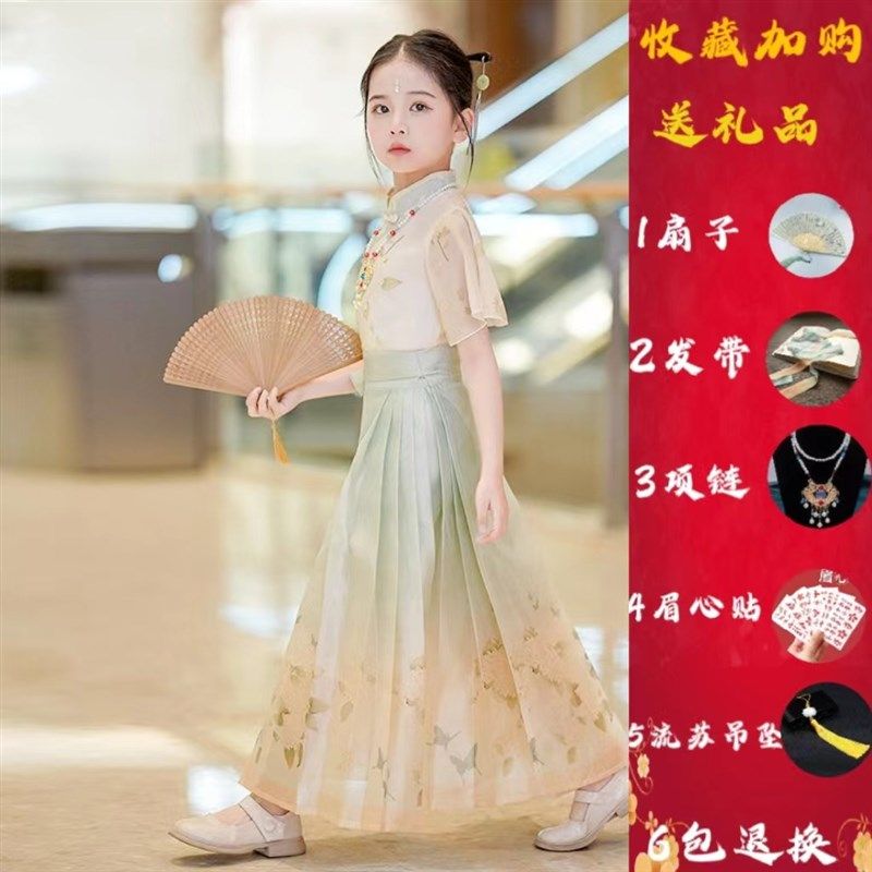 2024女童马面裙中国风夏季古装明制改良日常款儿童汉服小女孩套装