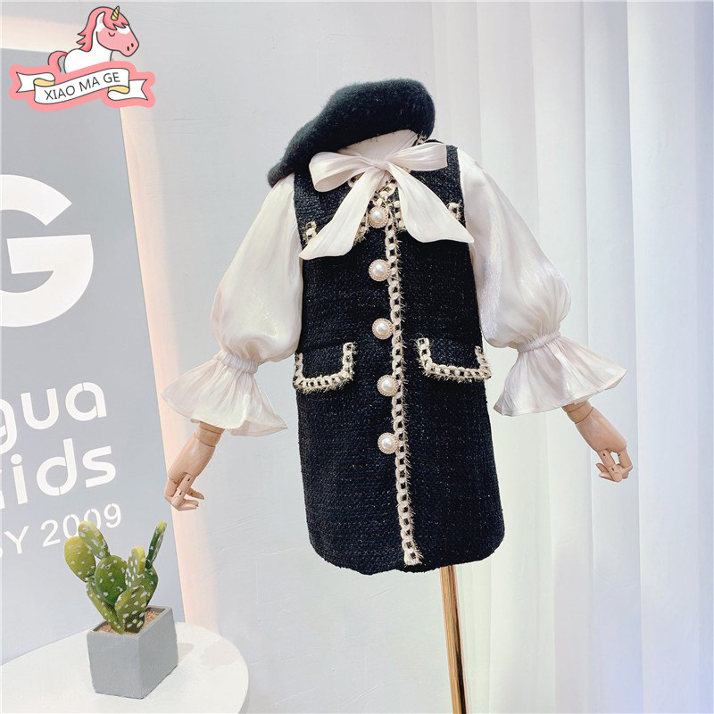 米米哈罗女童小香风公主裙冬装2025新款女孩背心裙套装儿童连衣裙