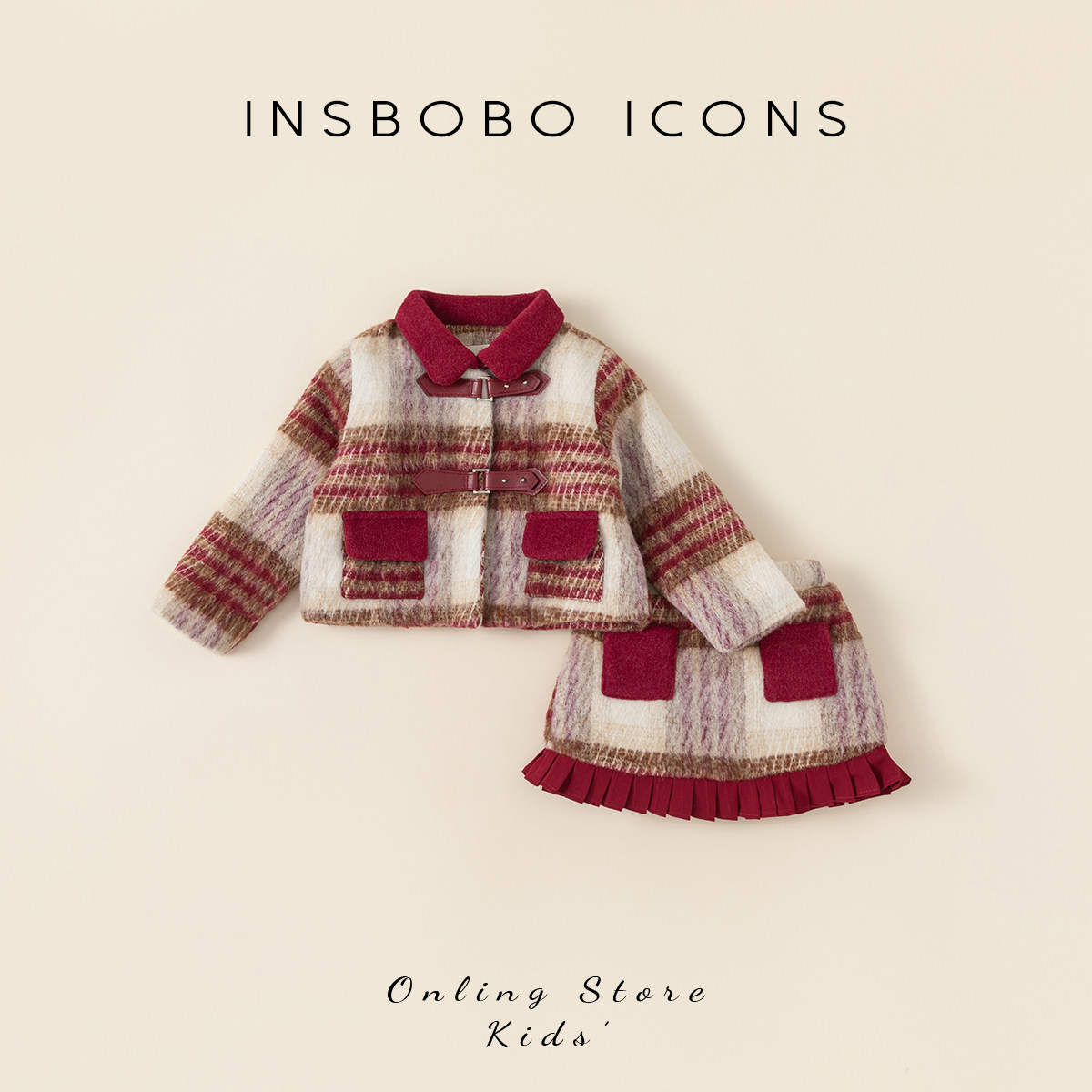 INSbobo女童连衣裙2024秋冬新款加厚洋气女宝格子裙小女孩套装裙
