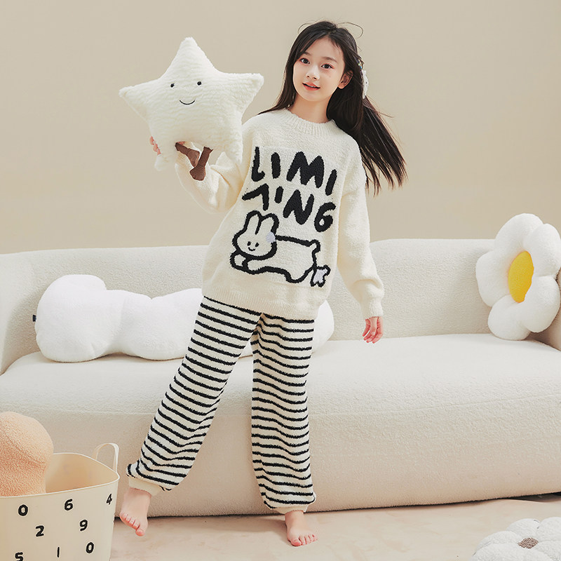 女童睡衣2025新款冬装儿童家居服加绒加厚小女孩套装女大童居家服