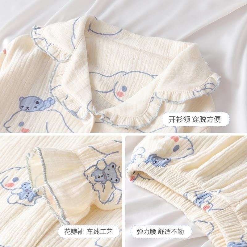2023新款女童睡衣儿童纯棉春秋季款纯棉纱布夏款玉桂狗小女孩套装