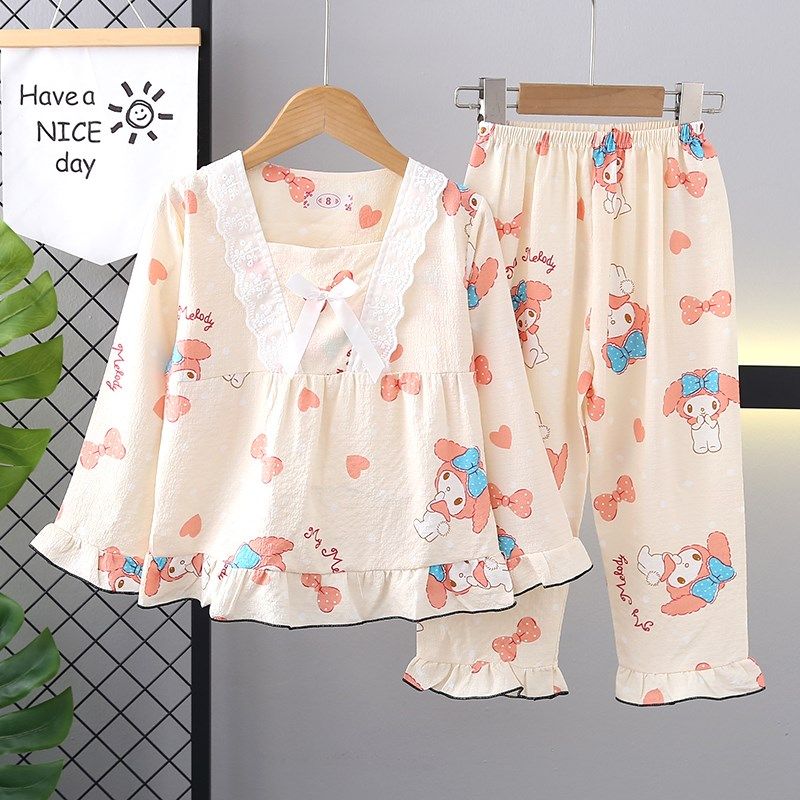 女童睡衣春秋长袖薄款库洛米公主风卡通可爱超萌家居服小女孩套装
