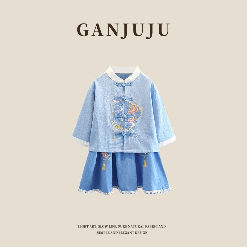 汉服女童春秋季薄款儿童唐装夏款长袖中国风超仙古装小女孩套装裙