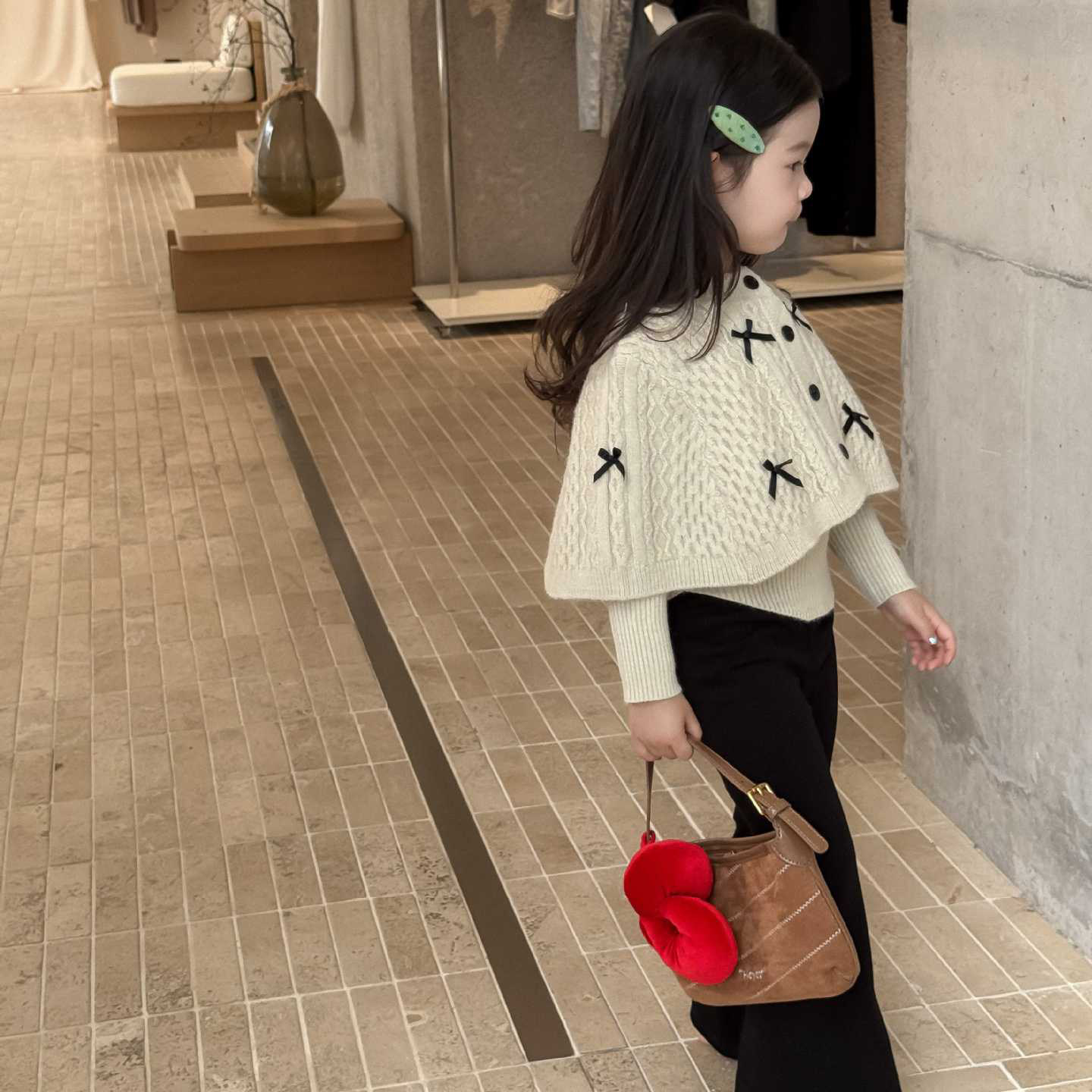女童韩版蝴蝶结毛衣秋季新款儿童装洋气针织衫外套小女孩套装秋装