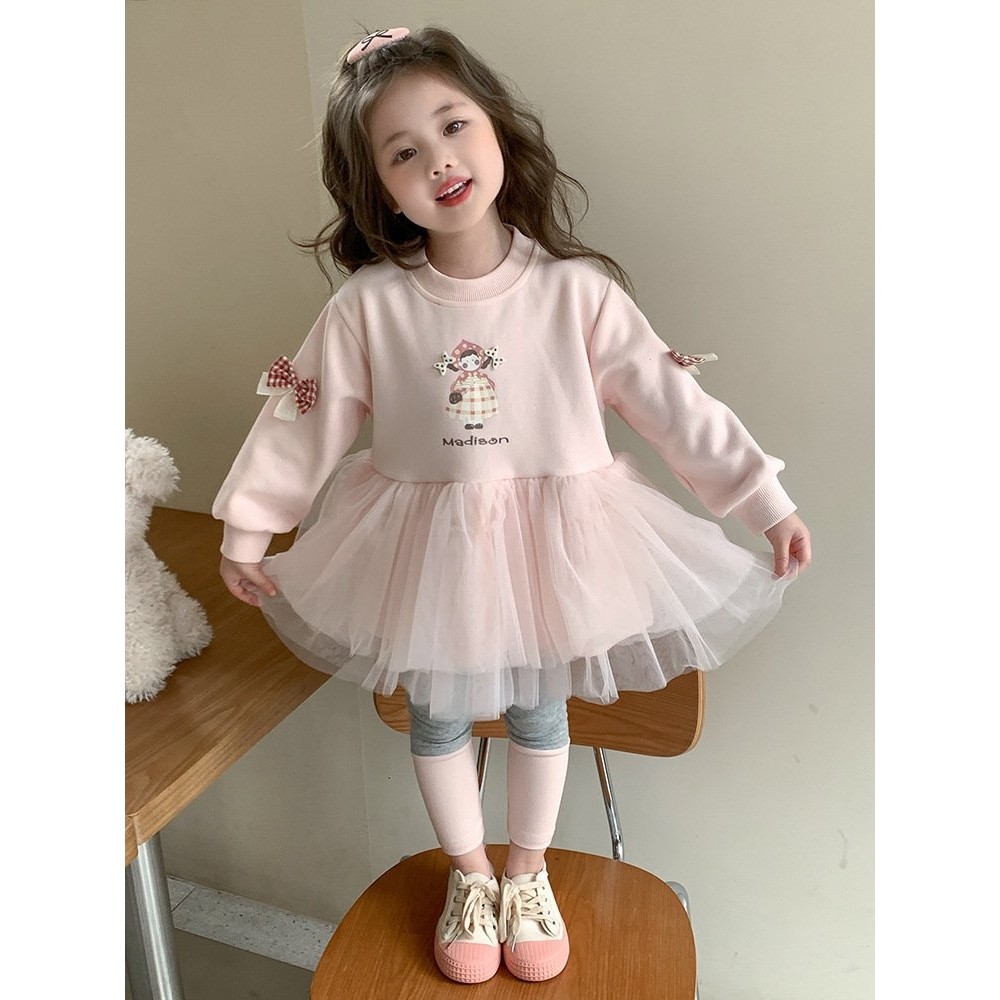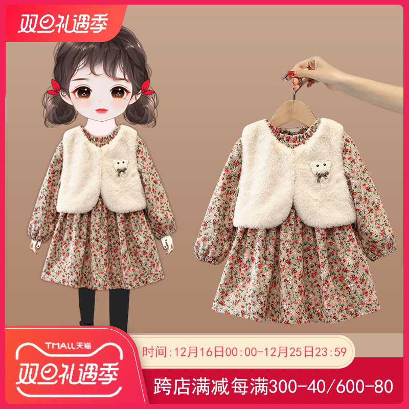 女童连衣裙加绒秋冬2023新款洋气小女孩套装裙女宝宝周岁公主裙子