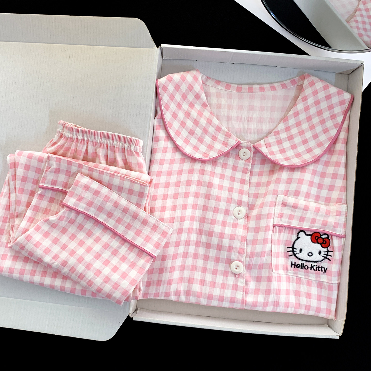儿童睡衣春秋季薄款云朵棉翻领长袖KT猫卡通可爱小女孩套装家居服