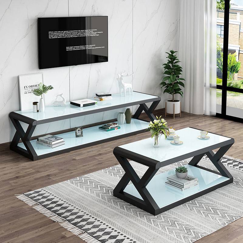 成都简约风钢化玻璃组合茶几电视柜小户型A09收纳多功能客厅家具