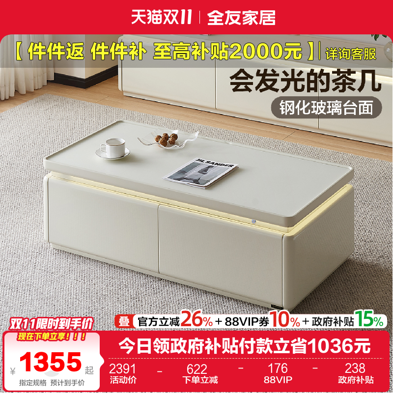 全友家居现代简约客厅家用多功能可伸缩钢化玻璃茶几电视机柜组合