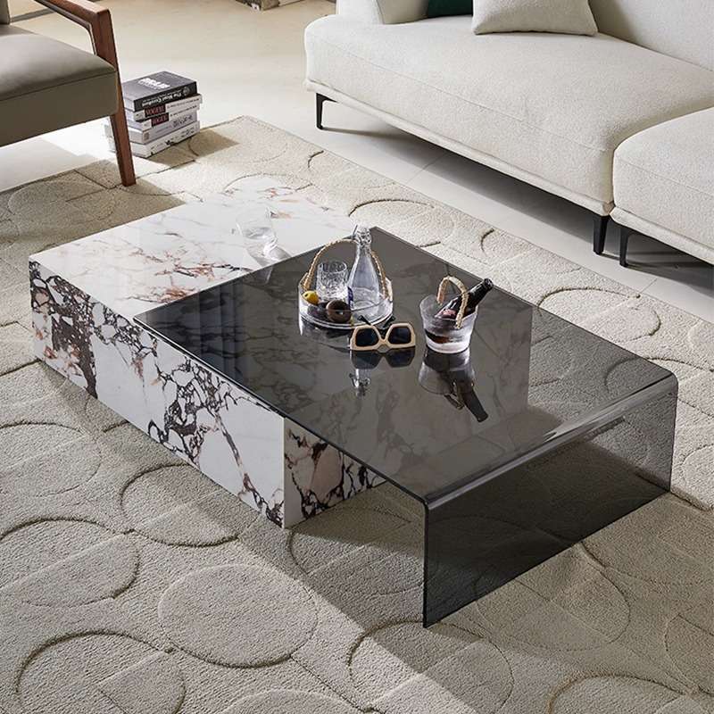 茶几客厅家用小户型钢化玻璃桌子简约现代电视柜组合方形岩板茶桌