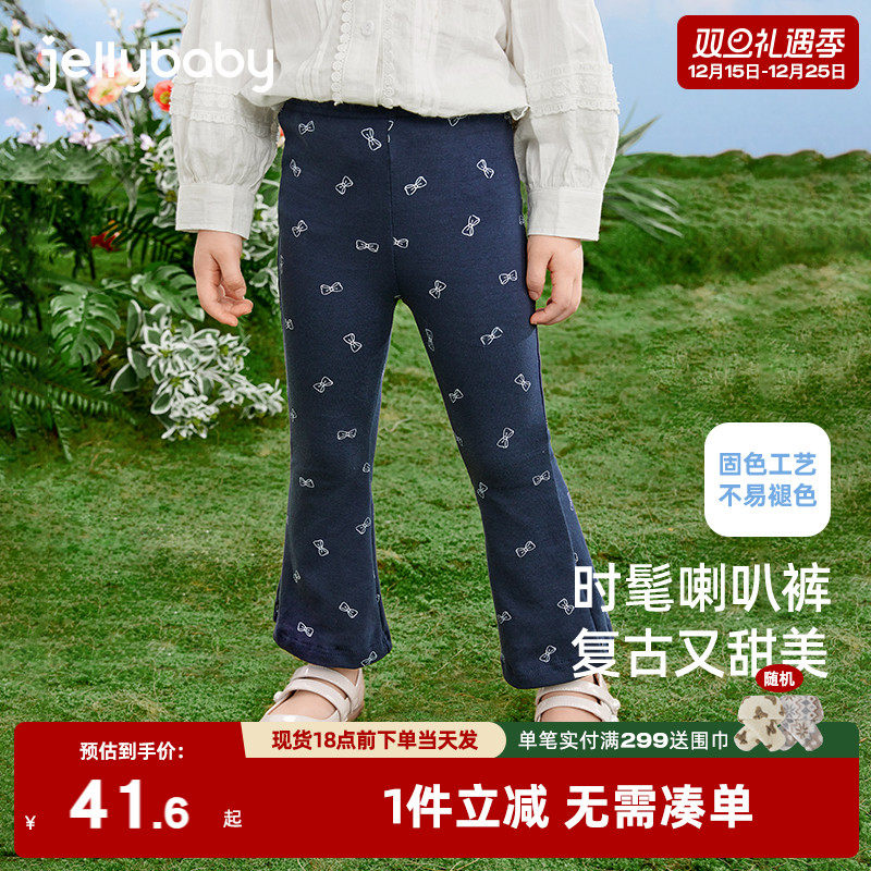 女童裤子儿童秋季新款宝宝长裤外穿秋装小童满印喇叭裤女宝打底裤
