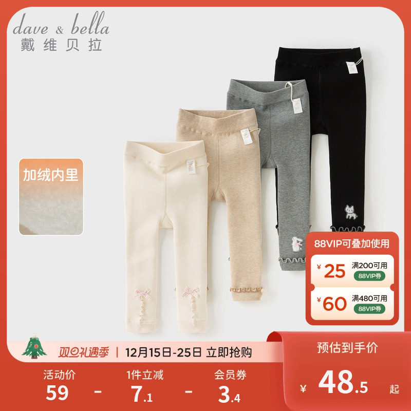 戴维贝拉儿童裤子2025女童新款加绒打底裤女宝冬装A类外穿长裤