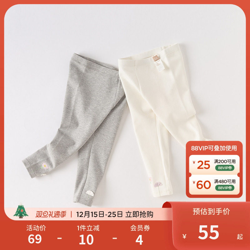 戴维贝拉女宝打底裤女童秋季弹力裤子儿童白色灰色长裤女宝宝童装