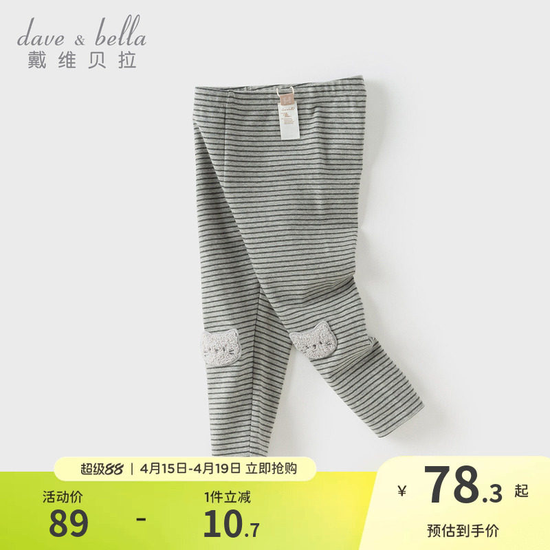 戴维贝拉儿童裤子2026女童新款A类弹力条纹打底裤女宝春装紧身裤