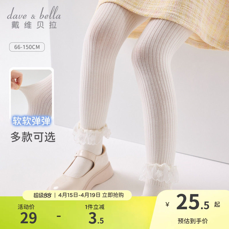戴维贝拉儿童连裤袜2026春季新款女童弹力打底裤女宝宝洋气童装