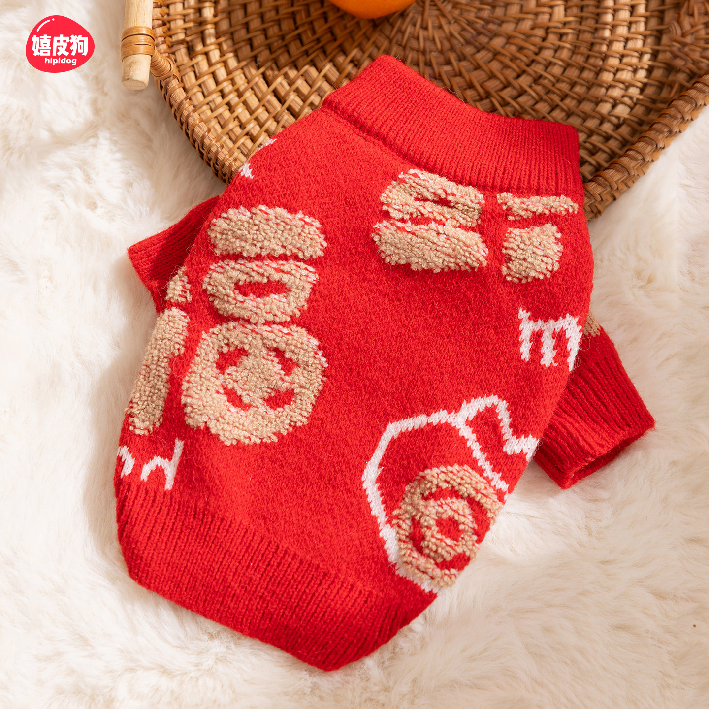 喜庆狗狗衣服冬天泰迪比熊雪纳瑞宠物西高地柯基小型犬秋冬季毛衣