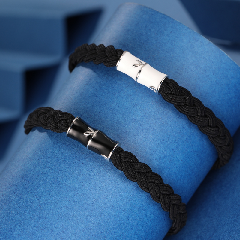 竹定纯银情侣手链一对简约独特设计男女异地恋学生调节手绳送情人