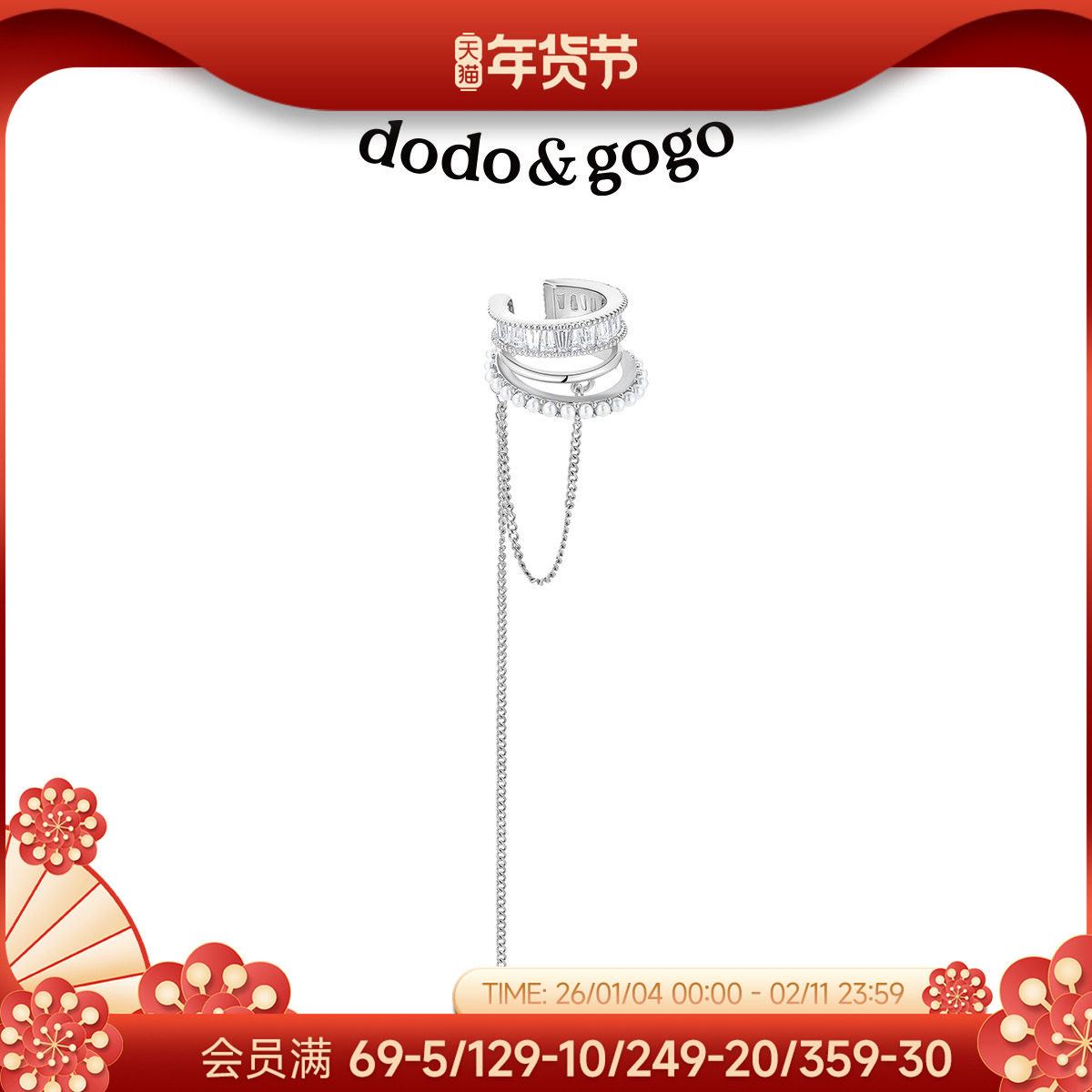 DODOGOGO珍珠锆石流苏耳骨夹无耳洞女小众设计感高级耳饰百搭耳环