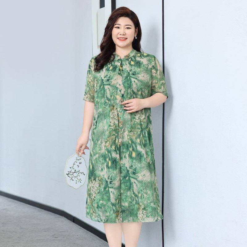 - 大码真丝连衣裙夏桑蚕丝