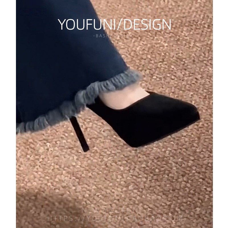 [明星同款]黑色防水台高跟鞋女春秋款2025新款绒面尖头气质性感御
