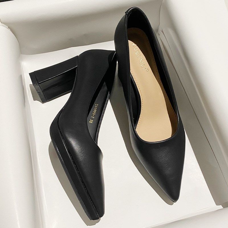 - 女鞋春秋单鞋 百搭中跟