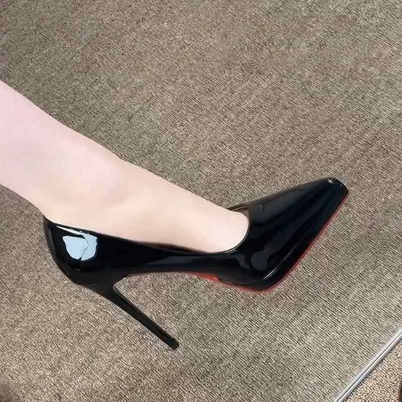 黑色防水台高跟鞋女细跟2025新款百搭气质尖头单鞋性感漆皮红底鞋