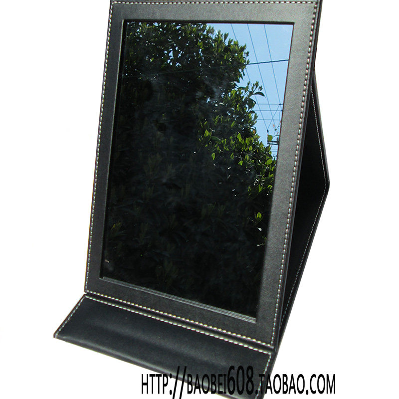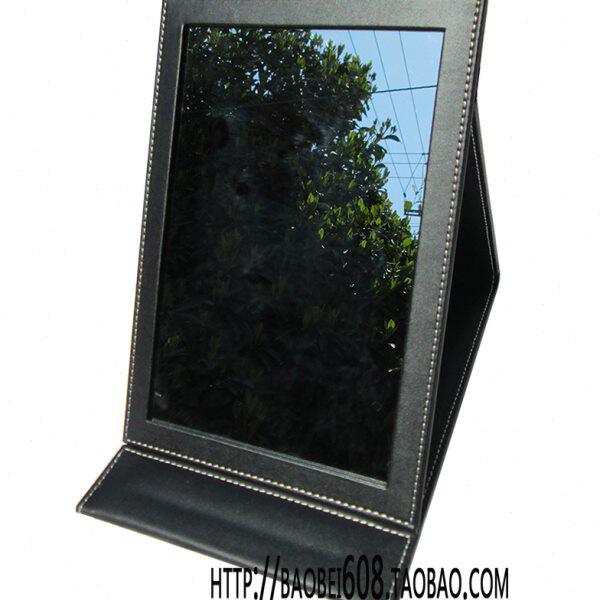 包邮 皮革 化妆镜 台式 大号 折叠 化妆镜 便携式化妆镜 镜子黑色