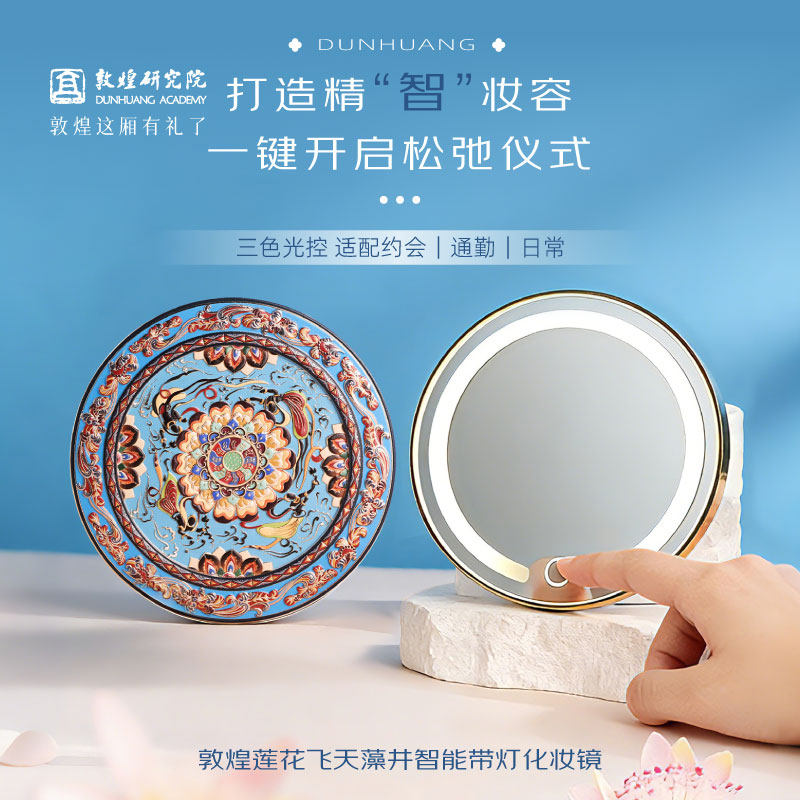 敦煌研究院 莲花飞天藻井智能带灯化妆镜 便携补妆镜手持随身镜
