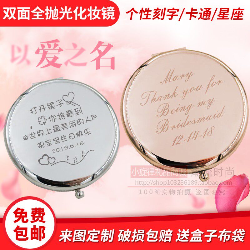 网红DIY刻字不锈钢化妆镜 便携折叠随身双面小镜子 礼物定制包邮