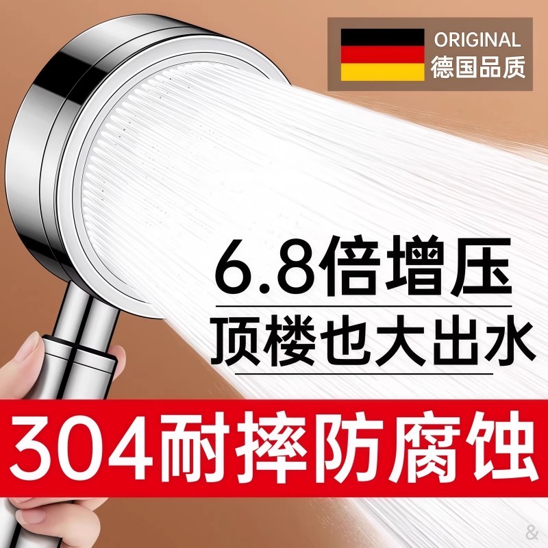 德国增压花洒喷头超强加压浴室家用淋浴头套装淋雨大出水量莲蓬头
